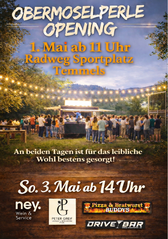 Am 1. Mai startet die Obermoselperle mit dem Team von ney. Wein & Service (Dede) in die neue Saison 2026. Los geht es um 11 Uhr!