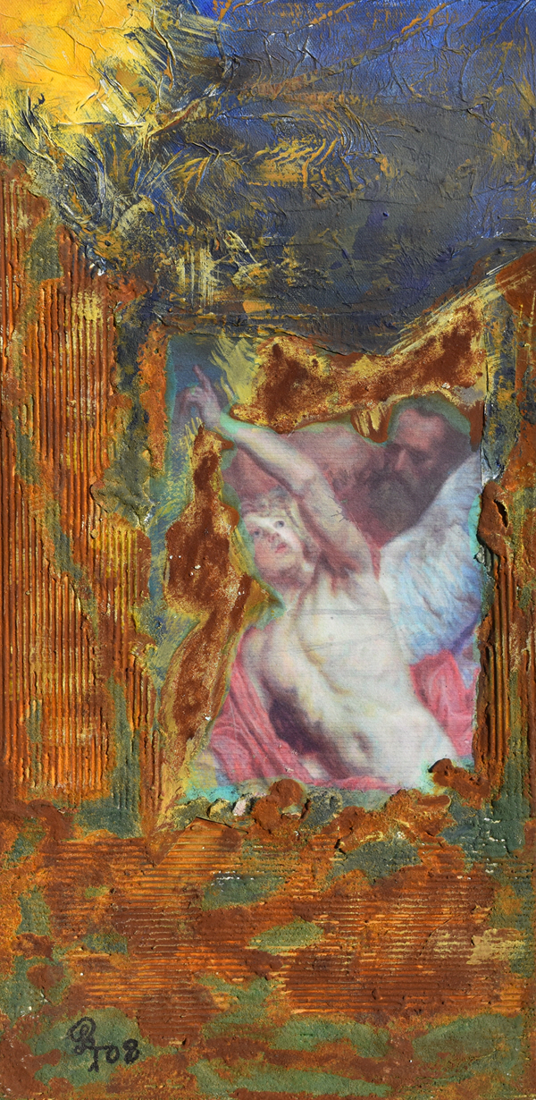 .small.jpg) Ikarus' Flug zur Sonne (Collage mit Acryl und Rost, 2008)
