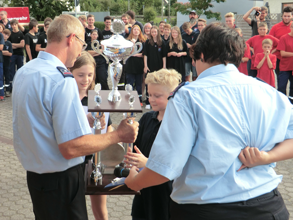 Pokalübergabe an die siegreiche Jugendfeuerwehr Temmels