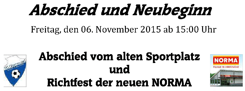 | Abschied vom alten Sportplatz und Richtfest der neuen NORMA (veröffentlicht am 02.11.2015)